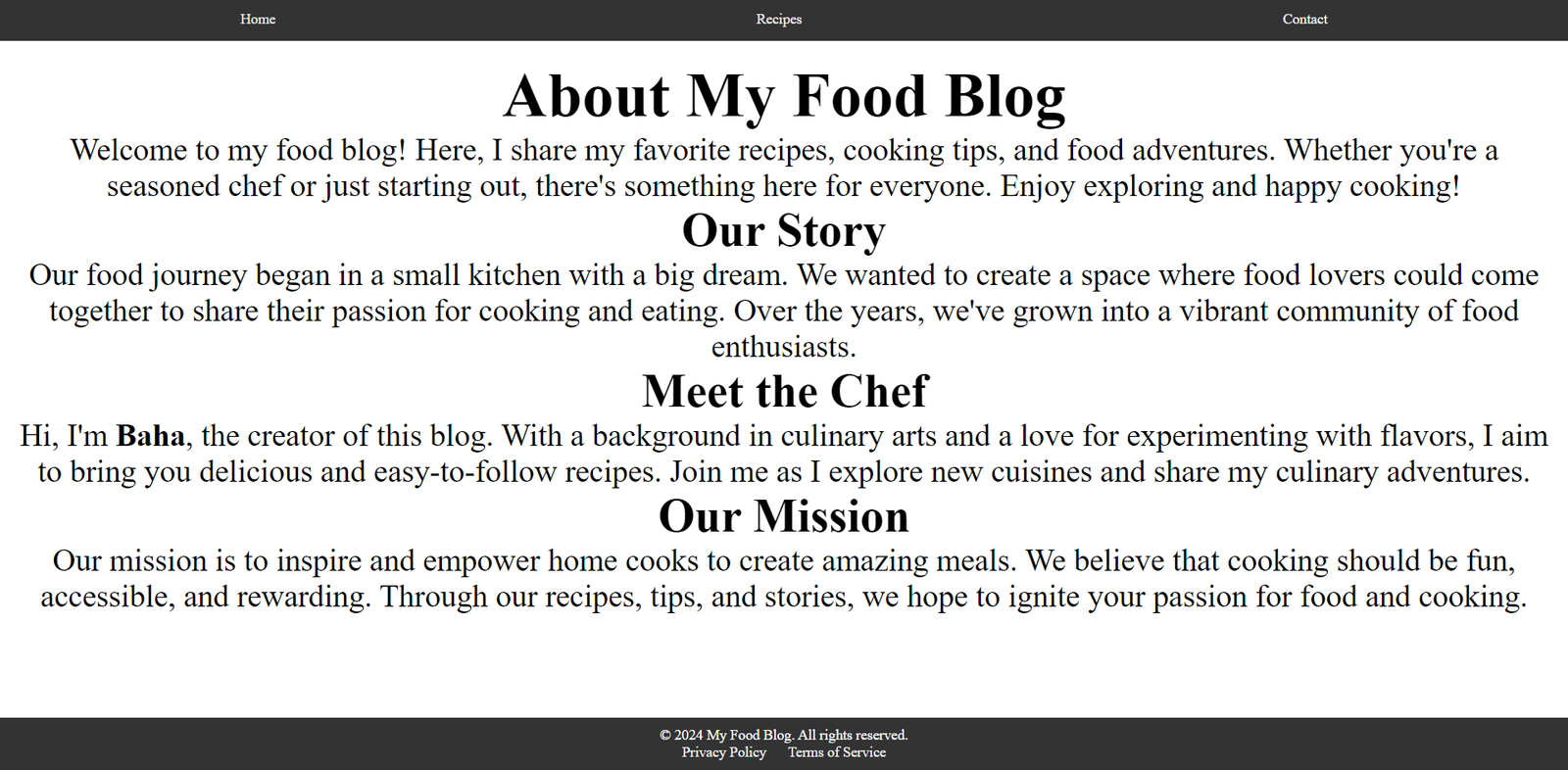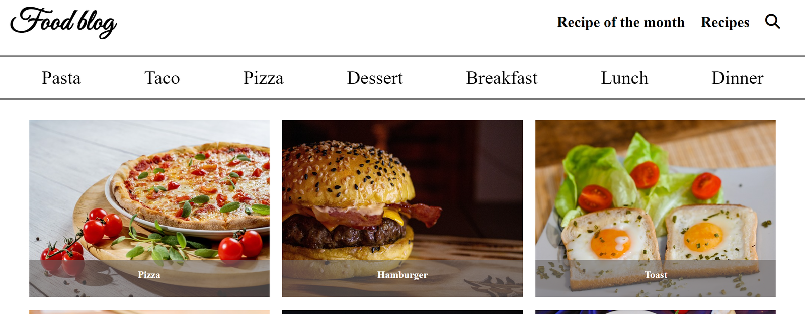 Dieses Projekt entstand als eigenständig entwickelter Prototyp zur strukturierten Darstellung von Inhalten – exemplarisch umgesetzt anhand eines Food-Blogs. Die Anwendung zeigt verschiedene Gerichte, bietet eine Sonderseite für das „Rezept des Monats“ und stellt in einem About-Bereich die Idee hinter dem Projekt vor.