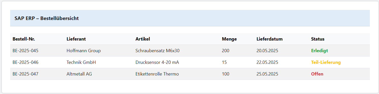 - 🛒 Bestellformular: Erfassung von Artikeldaten, Mengen und Lieferterminen